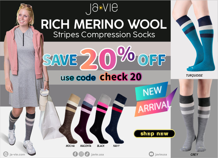 ja-vie targeted compression performance socks provides better circulation, reduced muscle fatigue and soreness, increased stability, minimized swelling, and improved comfort.